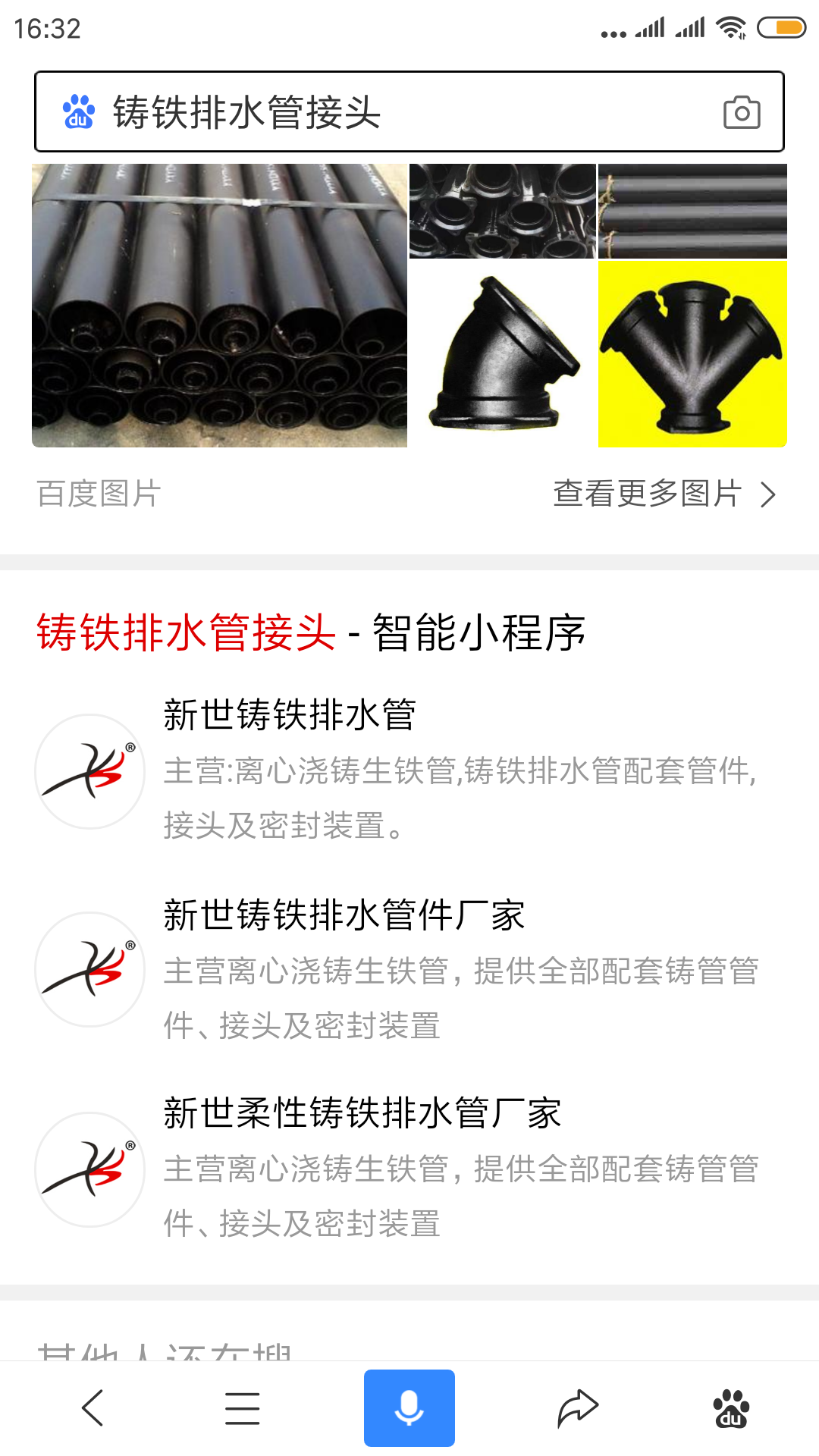 百度小程序:新世鑄鐵排水管、新世柔性鑄鐵管廠家、新世柔性鑄鐵排水管廠家、新世環氧鑄鐵管廠家、新世鑄鐵管件廠家、新世環氧排水管廠家、新世環氧樹脂鑄鐵管廠家、新世鑄鐵排水管件廠家